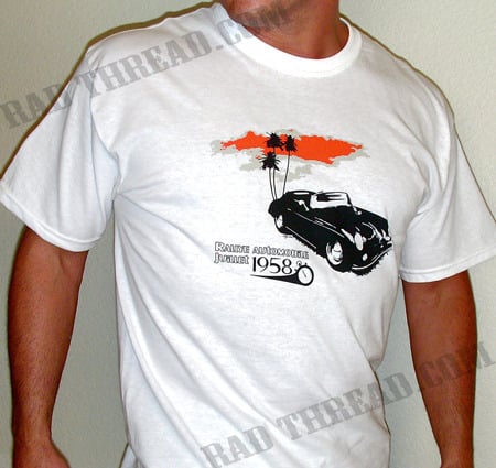 This stylized Porsche 356 Rallye print adorns a 100% cotton casual t shirt.