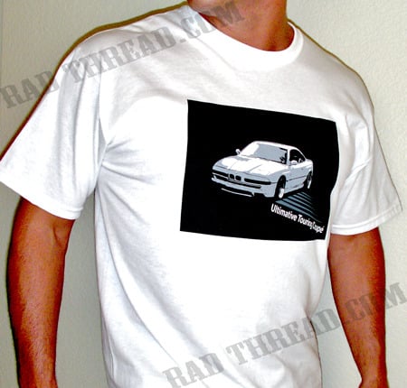 This "Ultimative touring coupe" print shows off maybe one of the best angles the great E31 offers. Printed on a 100% cotton casual t shirt...velvet glove not included.